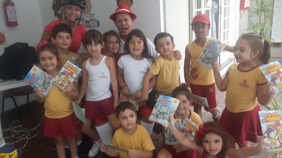 No dia 15 de março o teatro Trânsito Feliz e o Bê-a-Bá da Prevenção realizou apresentações no Colégio Gardner em São José. Os alunos que apreciaram às apresentações lúdicas da dupla Rudi e Willy, aprenderam mais sobre a importância da segurança no trânsito e a cultura do seguro. Saiba mais: