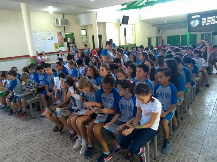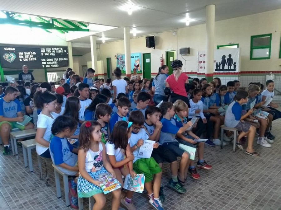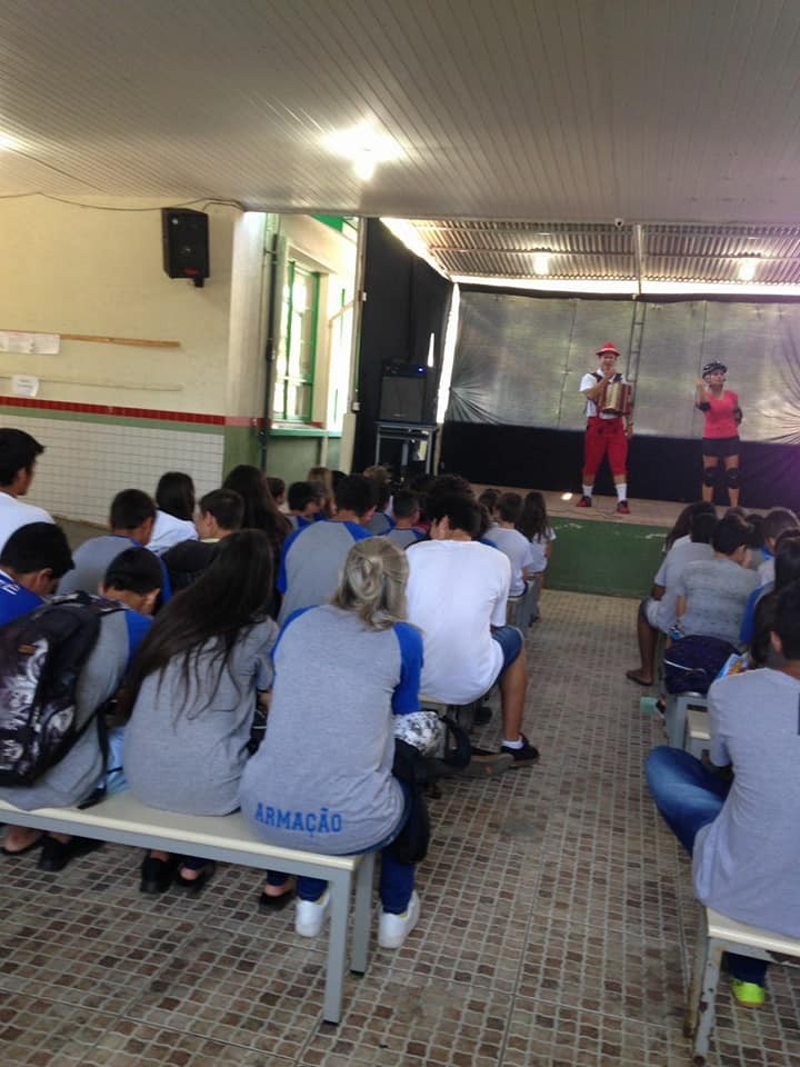 No dia 12 de abril a Escola Professor João Batista de Paiva, da cidade de Penha, recebeu apresentações do teatro Trânsito Feliz e o Bê-a-Bá da Prevenção, encenado pela dupla Rudi e Sissa, que ensina de forma divertida, conceitos sobre proteção no trânsito e a importância da cultura do seguro. Crédito das fotos: Escola Professor João Batista de Paiva
