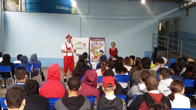 Foi realizado no dia 17 de maio, na Escola Almirante Tamadaré em Blumenau, o teatro do projeto Bem Seguro Teen, que leva dicas de segurança no trânsito e informações sobre o mercado de seguros para adolescentes do 5º ao 9º ano do Ensino Fundamental. Confira os registros: