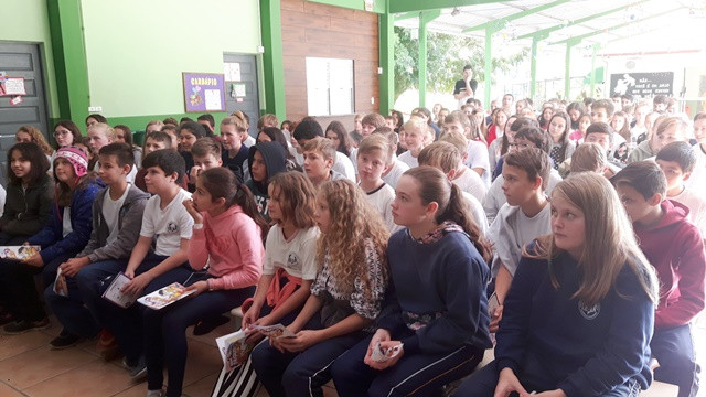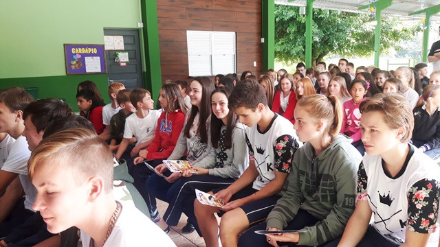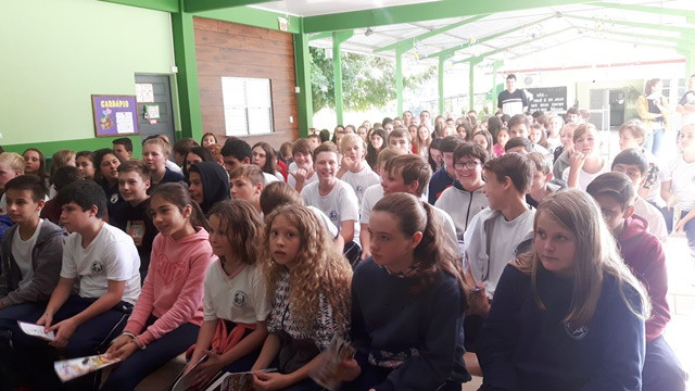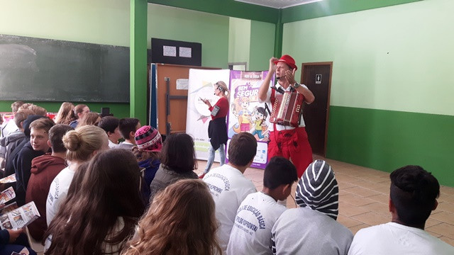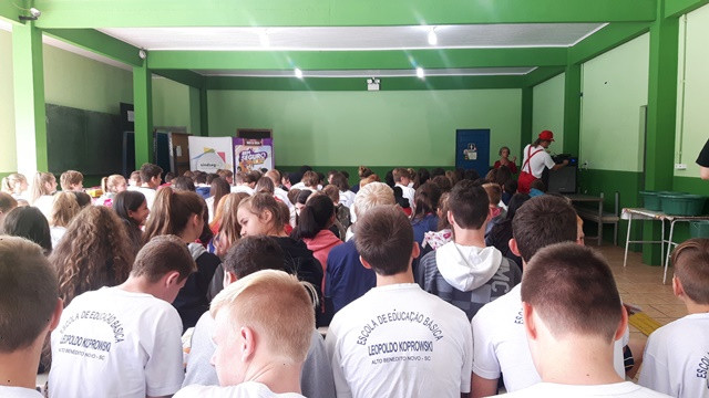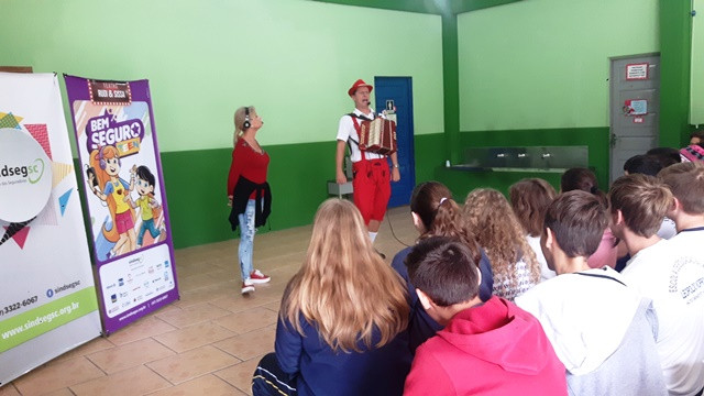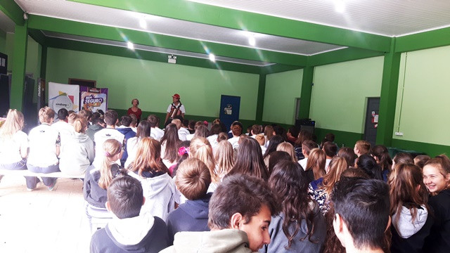 A Escola Leopoldo Koprowski, de Benedito Novo, recebeu no dia 29.05 o teatro do projeto Bem Seguro Teen, que leva dicas de segurança no trânsito e informações sobre o mercado de seguros para adolescentes do 5º ao 9º ano do Ensino Fundamental. Confira os registros: