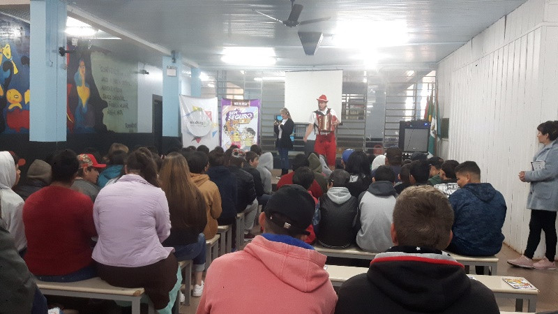 No dia 06 de setembro a Escola Marcolina Rodrigues da Silva, em Chapecó, recebeu o teatro do projeto Bem Seguro Teen, que leva dicas de segurança no trânsito e informações sobre o mercado de seguros para adolescentes do 5º ao 9º ano do Ensino Fundamental. Confira as fotos: