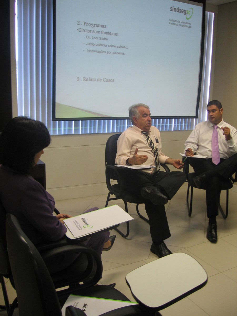 No dia 05.03.2012, foi realizada na sede do SindsegSC a edição pioneira do Programa Diretor Sem Fronteiras. Dr. Lodi Maurino Sodré foi o profissional convidado especial desta edição e o tema abordado foi Jurisprudência sobre suicídio e Indenizações por acidente.