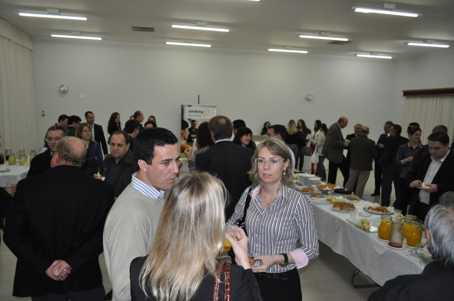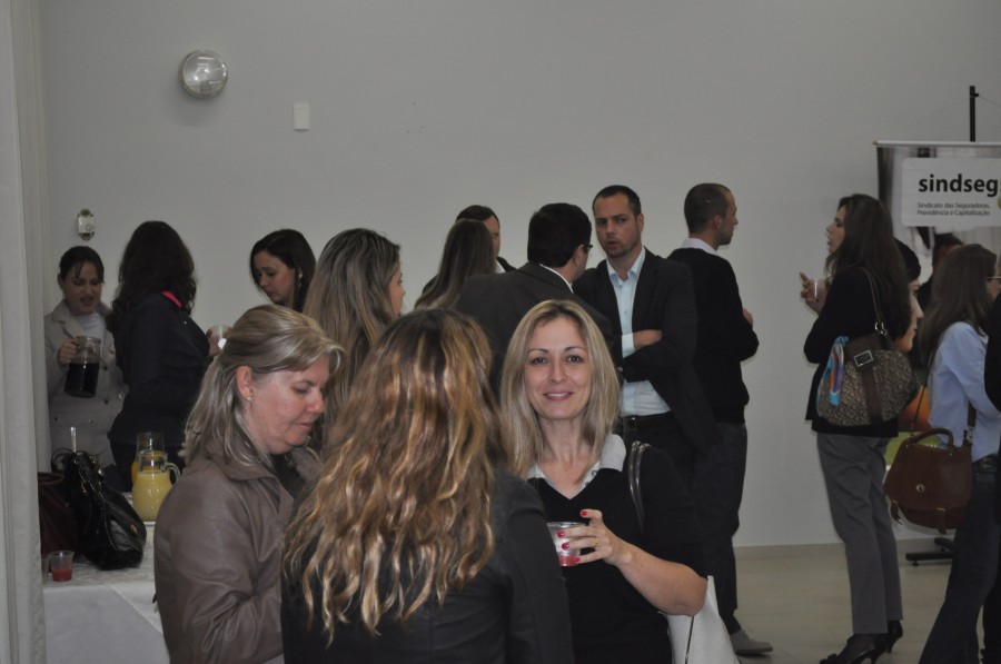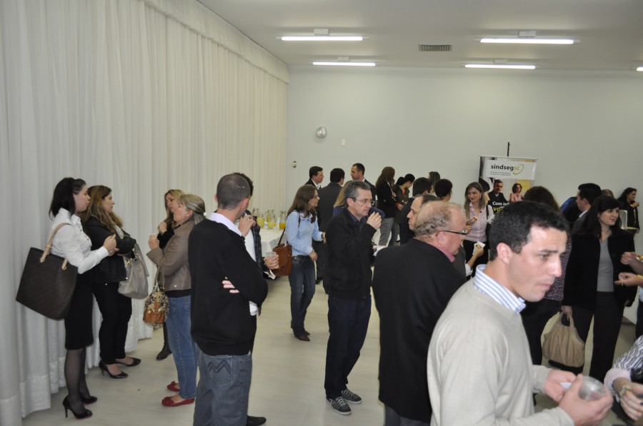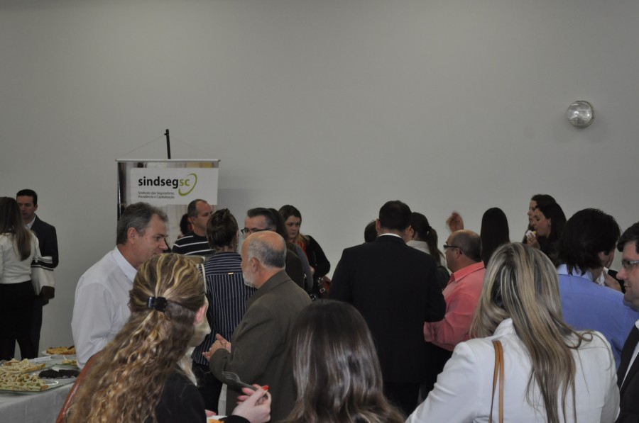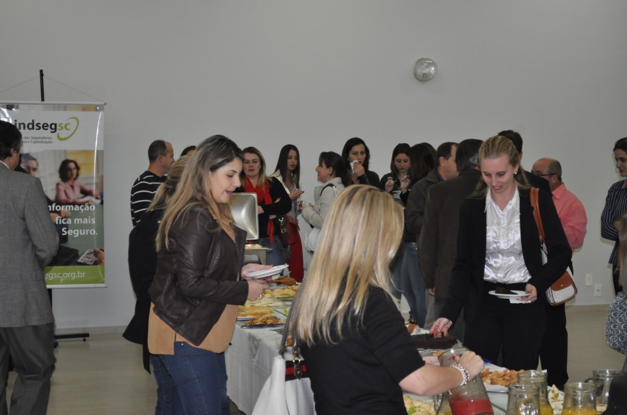 Fotos do coffee break receptivo da Palestra Resseguro: o mercado de seguros, realizada pelo SindsegSC junto com a Comissão Ramos Diversos. O evento aconteceu no Hotel Himmelblau à partir das 18h30min, tendo como ministrante da palestra Sr. Sérgio Barroso de Mello.