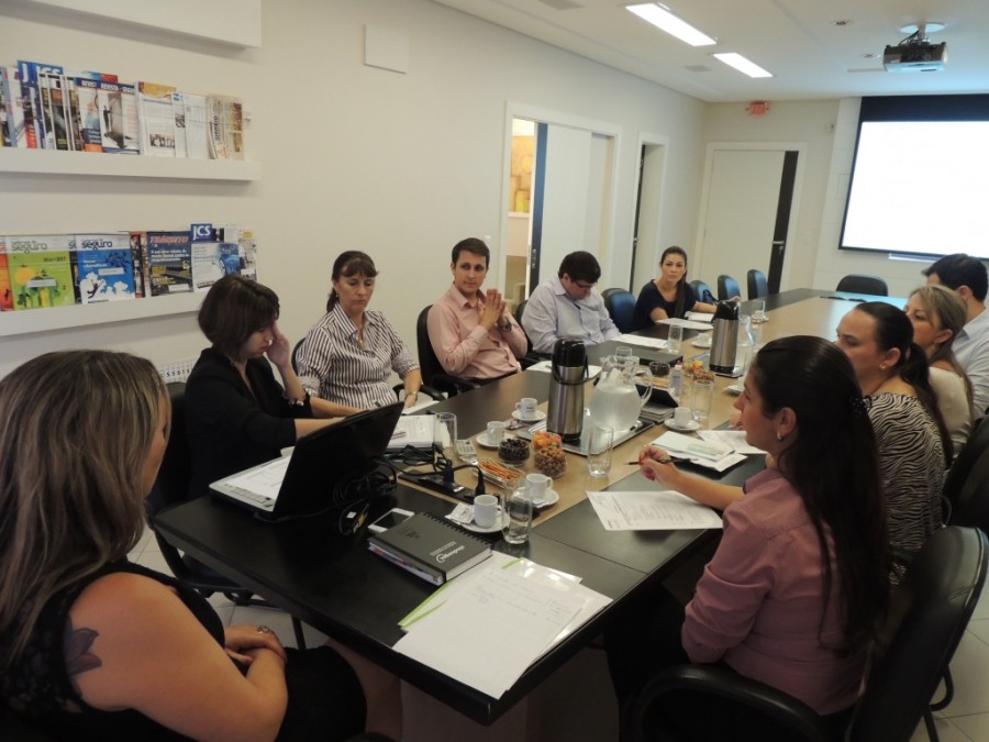 Fotos da reunião da Comissão de Riscos Pessoais do SindsegSC realizada na sede da entidade em Blumenau. A Comissão é formada por profissionais representantes das seguradoras associadas ao SindsegSC.