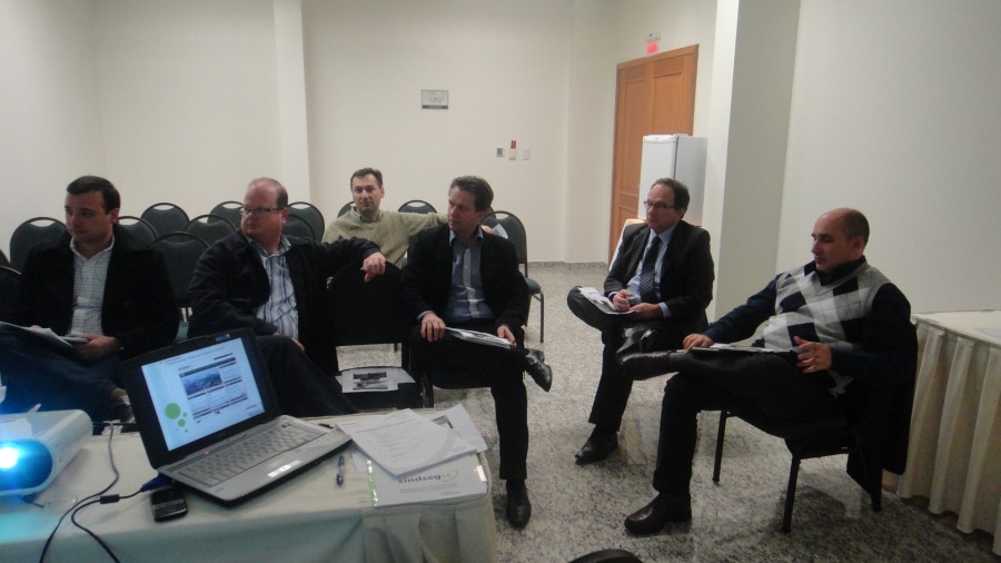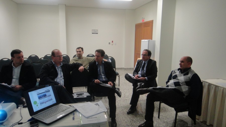 Reunião do Grupo de Trabalho de Chapecó do SindsegSC, composto por profissionais de seguradoras associadas ao sindicato. Na reunião do dia 13.05 o Grupo recebeu também a visita da prestadora de serviços Dekra, que apresentou seu portfólio aos presentes.