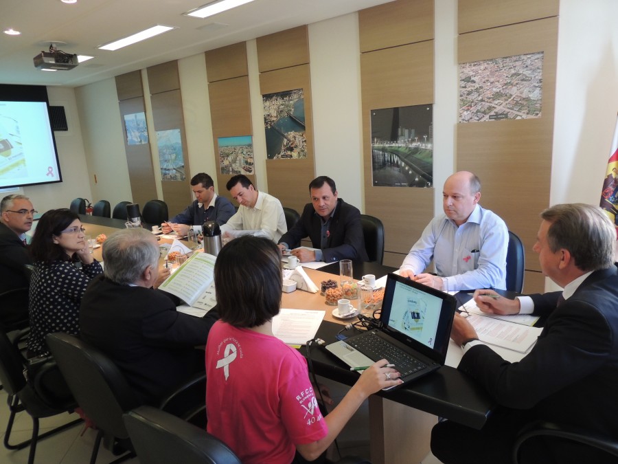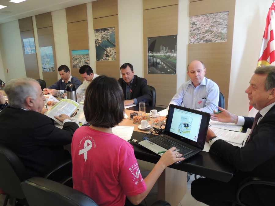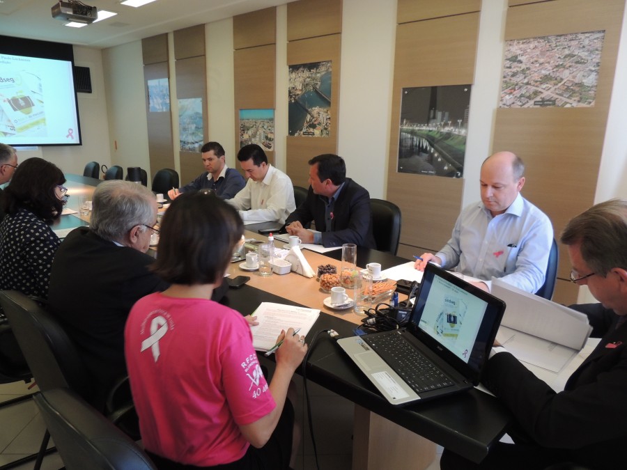 Fotos da reunião da Diretoria do SindsegSC realizada na sede da entidade no dia 07.10.2013. Nesta data a entidade iniciou sua participação na luta contra o câncer de mama com a campanha “Outubro Rosa”.
