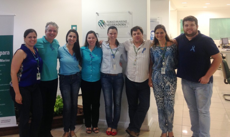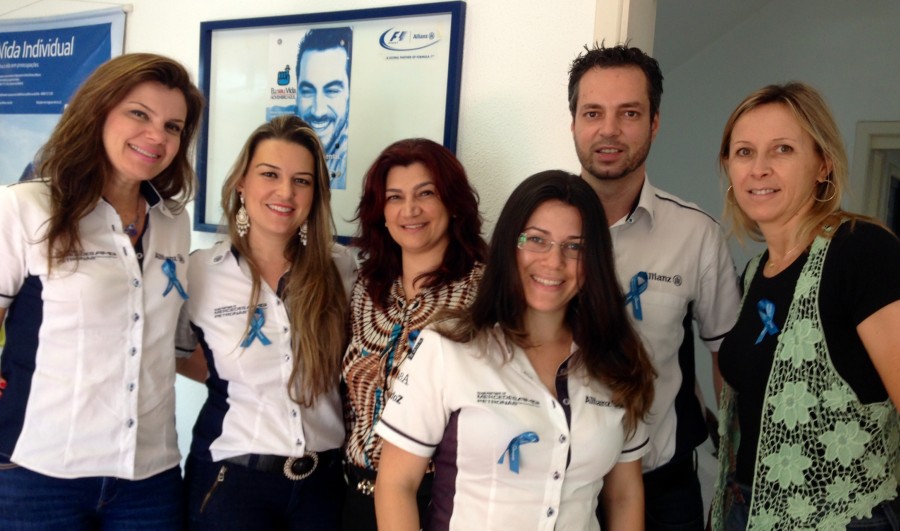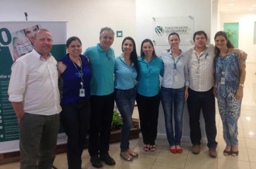 Profissionais das Seguradoras Associadas aderem a Campanha do SindsegSC ‘’Eu Sou Vida’’ do Novembro Azul usando as fitinhas de cor azul. O principal objetivo é unir a população e alertar sobre os riscos e a prevenção do Câncer de Próstata.
