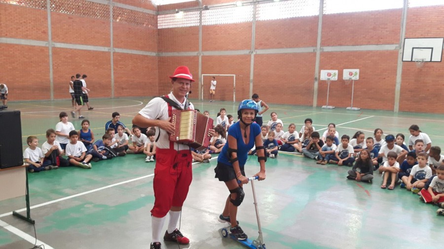 Dia 04 de março foi uma data diferente para os alunos da escola EEB Heriberto Joseph Muller, da cidade de Blumenau. Nessa data, eles receberam a visita de Rudi e Sissa, dupla que apresenta o Teatro Trânsito Feliz e o Bê-a-Bá da Prevenção. Confira o registro: