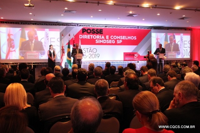 O SindsegSP - Sindicato das Seguradoras de São Paulo realizou sua cerimônia de posse da diretoria gestão 2016/2019 no dia 3 de maio. A solenidade ocorreu no Hotel Tivoli em São Paulo, e contou com a presença de diversas autoridades do mercado de seguros. O presidente do SindsegSC Paulo Lückmann e a gerente executiva Siméia Heleodoro estiveram presentes representando a entidade. Confira abaixo o registro do evento. Crédito das fotos: CQCS.