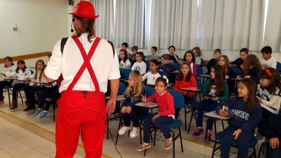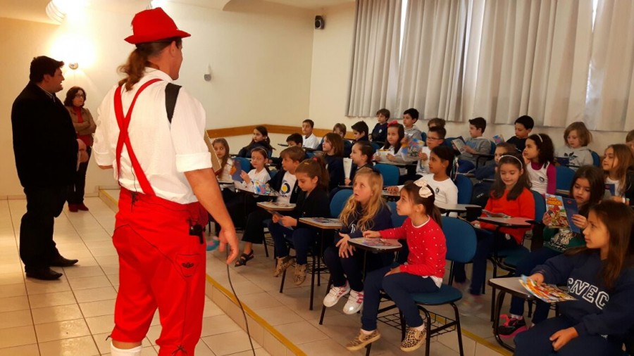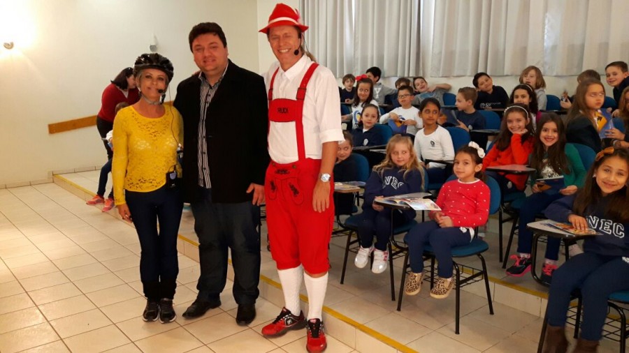 No dia 12 de agosto, a dupla Rudi e Sissa apresentou o teatro Trânsito Feliz e o Bê-a-Bá da Prevenção no Colégio Cenecista Dr. Julio Cesar Ribeiro Neves, da cidade de Concórdia. A dupla levou de forma divertida, informações sobre a cultura do seguro e também a importância da segurança no trânsito. Confira: