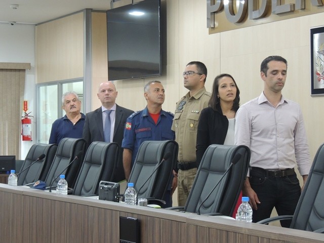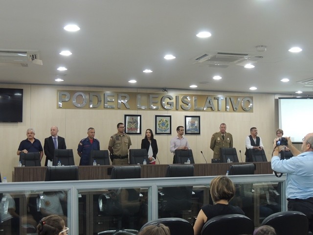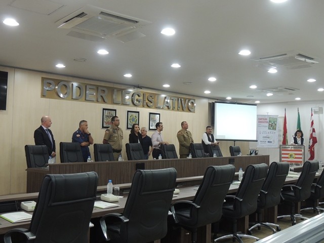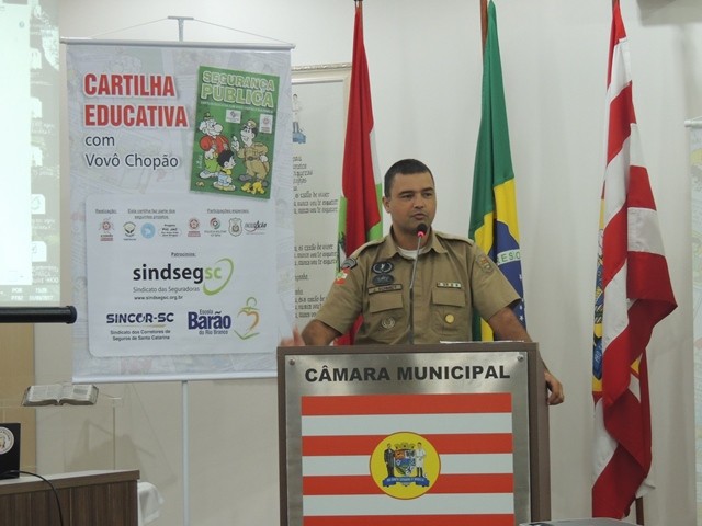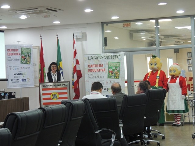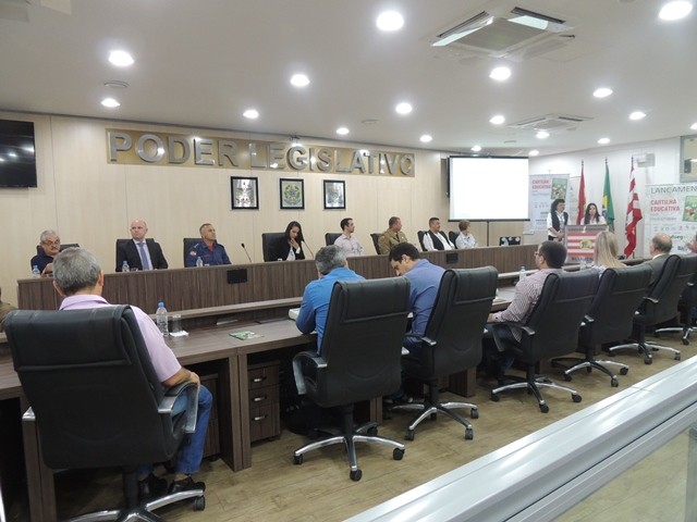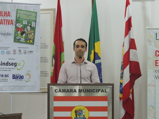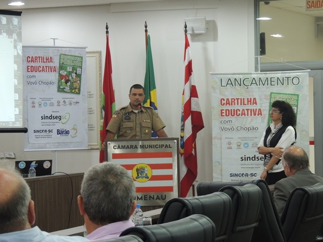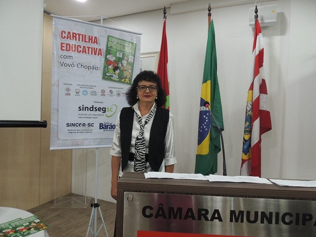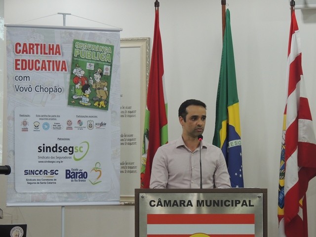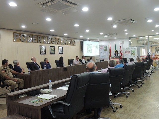 No dia 31 de março aconteceu o lançamento da Cartilha Educativa de Segurança Pública na Câmara Municipal de Vereadores de Blumenau. Na oportunidade foram apresentadas o cronograma de atividades e as entidades parceiras do projeto. Representando o SindsegSC, estavam presentes o presidente Rogerio Spezia e a gerente executiva Siméia Heleodoro. Crédito da foto: SindsegSC | Salete Sbardelatti