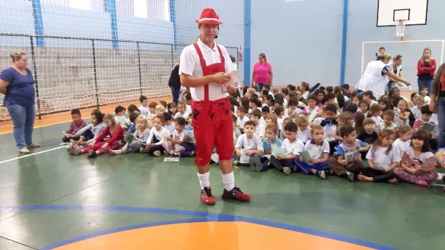 O teatro Trânsito Feliz e o Bê-a-Bá da Prevenção é apresentado pela dupla de humoristas Rudi e Sissa, e leva informações sobre segurança no trânsito e cultura do seguro para alunos nas escolas de Santa Catarina. Confira as fotos da apresentação na EMEF Urbano Teixeira da Fonseca, de Guaramirim: