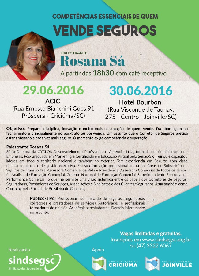 30.06.2016 - Palestra em Joinville com Rosana Sá