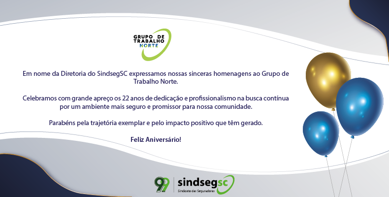 O SindsegSC registra os seus sinceros agradecimentos por todos estes anos de dedicação e deseja que o GT Norte continue trilhando um caminho de sucesso. Muito obrigado!