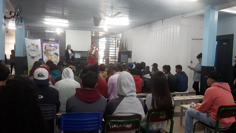 No dia 06 de setembro a Escola Marcolina Rodrigues da Silva, em Chapecó, recebeu o teatro do projeto Bem Seguro Teen, que leva dicas de segurança no trânsito e informações sobre o mercado de seguros para adolescentes do 5º ao 9º ano do Ensino Fundamental. Confira as fotos: