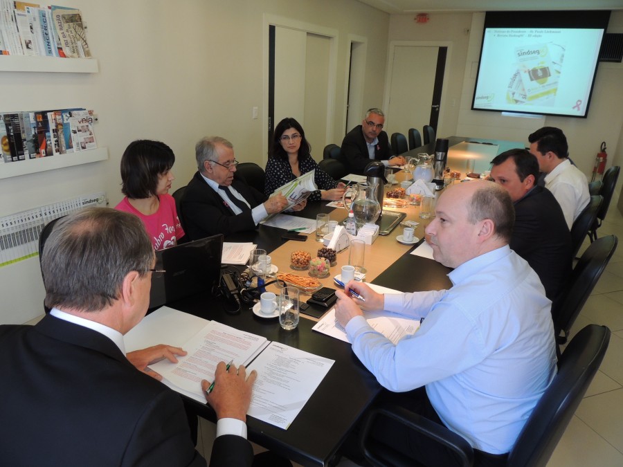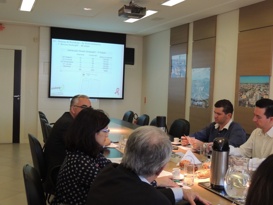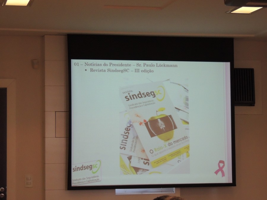 Fotos da reunião da Diretoria do SindsegSC realizada na sede da entidade no dia 07.10.2013. Nesta data a entidade iniciou sua participação na luta contra o câncer de mama com a campanha “Outubro Rosa”.