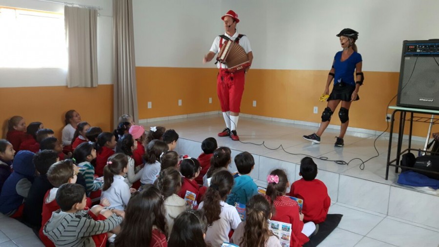 No dia 11 de maio a dupla Rudi e Sissa apresentou o teatro Trânsito Feliz e o Bê-a-Bá da Prevenção na escola Angelo Zanellato em Içara. O projeto levou aos alunos da região dicas sobre a segurança no trânsito e conhecimento sobre o mercado de seguros. Confira como foi a apresentação:
