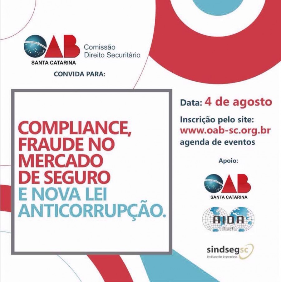 No dia 4 de agosto aconteceu em Florianópolis o evento Compliance, Fraude no Mercado de Seguros e Nova Lei Anticorrupção, promovida pela Comissão Direito Securitário da OAB de Santa Catarina. O SindsegSC foi um dos apoiadores do evento, juntamento com a AIDA Brasil.