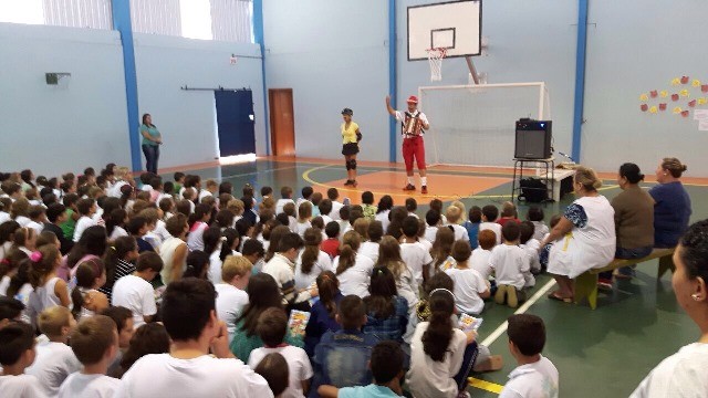 O teatro Trânsito Feliz e o Bê-a-Bá da Prevenção é apresentado pela dupla de humoristas Rudi e Sissa, e leva informações sobre segurança no trânsito e cultura do seguro para alunos nas escolas de Santa Catarina. Confira as fotos da apresentação na EMEF Urbano Teixeira da Fonseca, de Guaramirim: