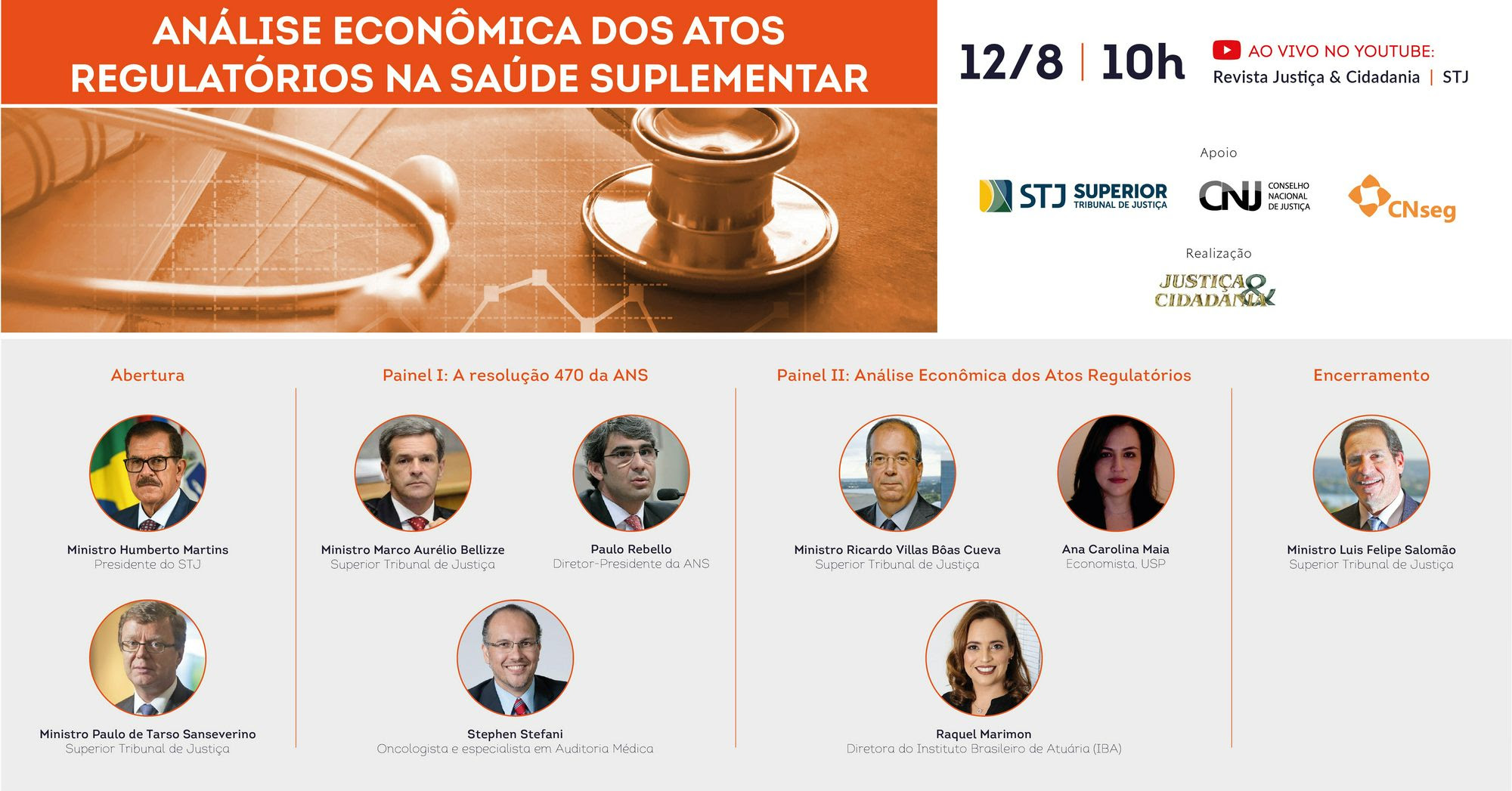Com transmissão ao vivo no canal da Revista no YouTube, o evento terá a participação de ministros do Superior Tribunal de Justiça (STJ), médicos, economistas, atuários e do novo presidente da ANS, Paulo Roberto Rebello Filho.