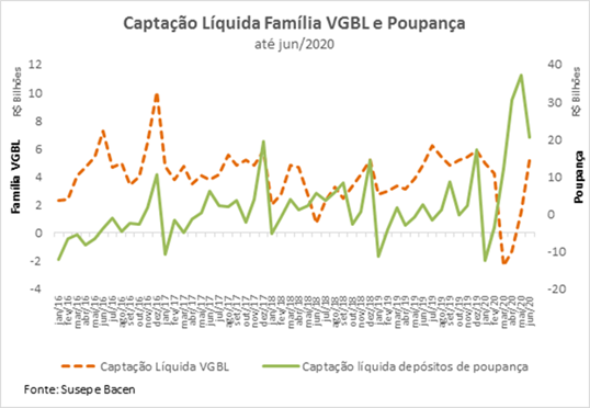 Rio de Janeiro, 3 de setembro de 2020 - Segundo a Confederação Nacional das Seguradoras (CNseg), a arrecadação dos Planos de Acumulação, em destaque o VGBL, voltou a crescer em junho totalizando R$ 9,9 bilhões, aumento de 6,2% na comparação com o mesmo mês do ano anterior. Os resgates voltaram ao patamar anterior a março e totalizaram R$ 4,7 bilhões, valor 5,0% maior do que o mesmo mês em 2019. Após a expressiva saída de recursos do VGBL em março, que pôde ser atribuído ao cenário de incerteza gerado pela pandemia, os resgates também voltam à normalidade e a captação líquida, que é basicamente a diferença entre a entrada e saída de recursos, está positiva. Em contrapartida, a captação da líquida da poupança em junho caiu e a rentabilidade foi de 0,13%. Com a redução da taxa básica de juros, a Selic, para 2%, a poupança deixa de ser atrativa e aumenta a procura por produtos que tragam um maior retorno, o que pode ser muito positivo para os Planos de Acumulação.