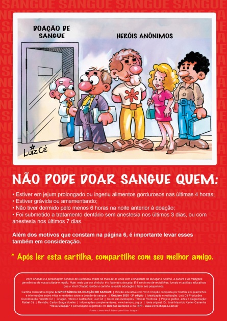 O SindsegSC – Sindicato das Seguradoras é um dos apoiadores da cartilha orientativa digital que trata do tema "A Importância da Doação de Sangue" com Vovô Chopão, produzida por Luiz Cé com o objetivo de levar informações de forma online.