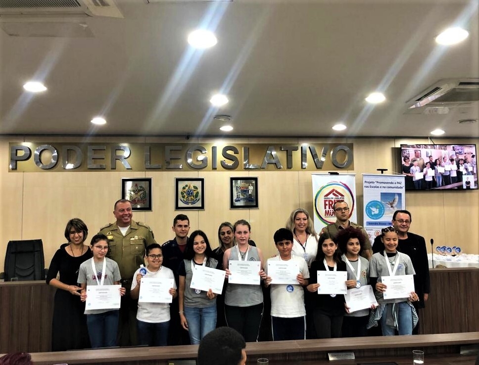 Já o Comandante do 3º Batalhão de Blumenau, o Tenente-Coronel BM, Jorge Artur Cameu Júnior, a Entidade que ele integra apoio o evento trabalhando temáticas relacionadas à paz nas escolas “abrigamos em nossa sala de aula um curso de oratória com textos escritos pela percepção das próprias crianças, dentro da temática proposta pelo projeto. Acompanhamos essas narrativas pois sabemos o quanto é vital trabalharmos esses tipo de assunto durante a fase da infância para que possamos construir um mundo mais seguro”, explicou o Comandante Cameu Júnior.